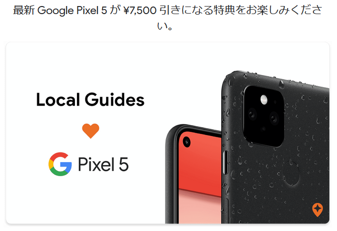 しかしながら、Googleから Google Pixel 5 が 7,500円 引きになる特典が届きました。